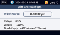 顯示分辨率:0-99.99ppm為0.01ppm   100-1000ppm為0.1ppm