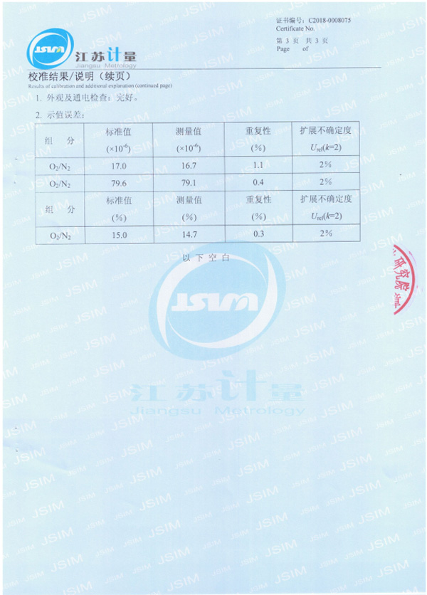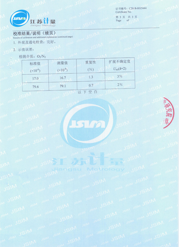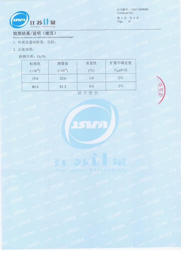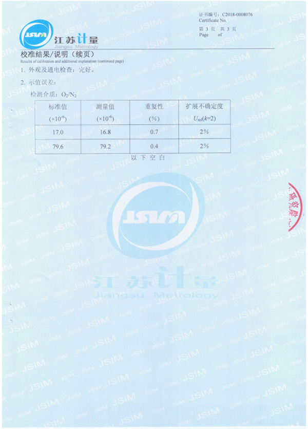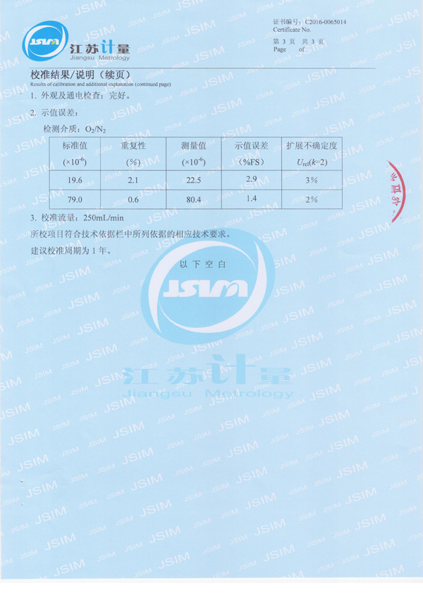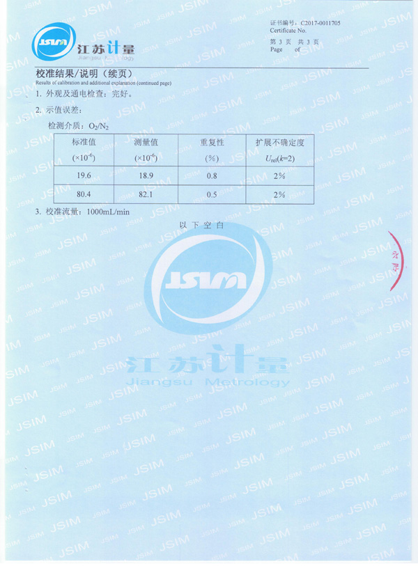 22、EC-402微量氧分析儀校準(zhǔn)證書