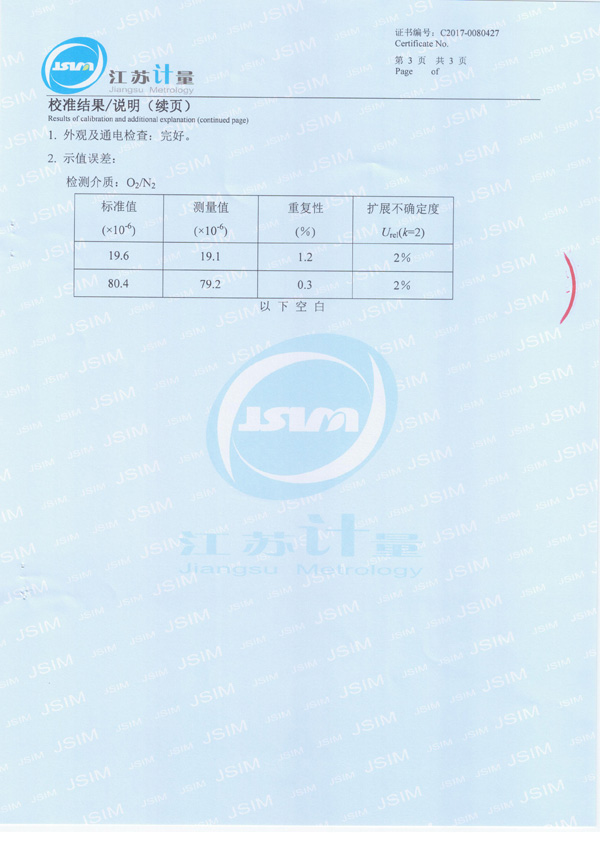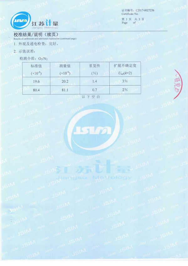 27、EC-402微量氧分析儀校準(zhǔn)證書