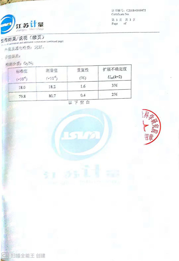 25、ZO-201 氧化鋯分析儀校準(zhǔn)證書